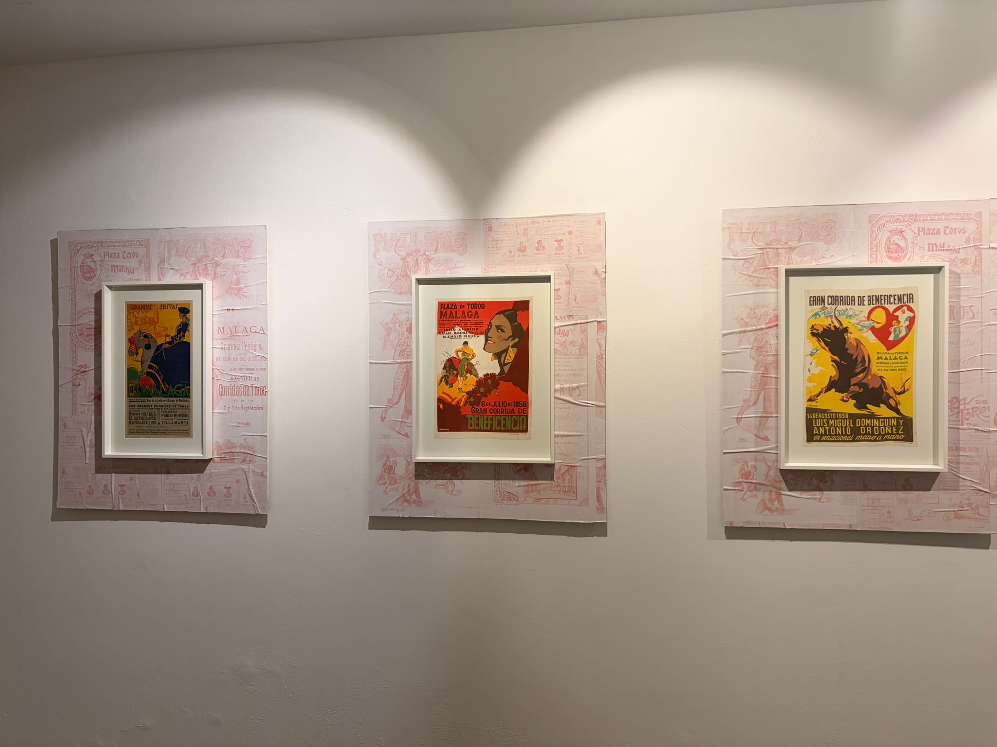 Entre las obras más destacadas figuran dos pinturas de Denis Belgrano y carteles firmados por reconocidos artistas como Ruano Llopis, Roberto Domingo y Ramos Rosa. La muestra incluye además uno de sus elementos más simbólicos: el facsímil del cartel inaugural de La Malagueta de 1876, recuperado por Toroshopping y expuesto por primera vez dentro del recorrido del tour.